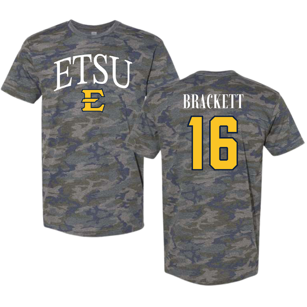 East Tennessee State University Football Vintage Camo Tee - #16 Nate Brackett