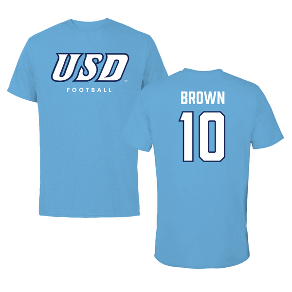 University of San Diego Football Carolina Blue Tee - #10 Nathan Brown