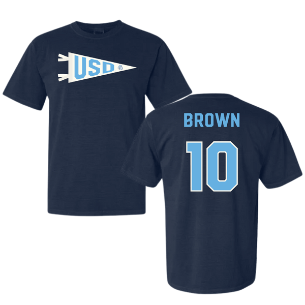 University of San Diego Football Navy Pennant Comfort Colors Tee - #10 Nathan Brown