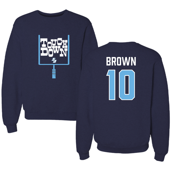 University of San Diego Football Navy Touchdown Crewneck - #10 Nathan Brown