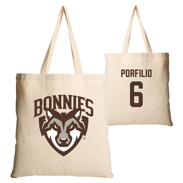 St. Bonaventure University Lacrosse Tan Canvas Tote Bag - #6 Nick Porfilio