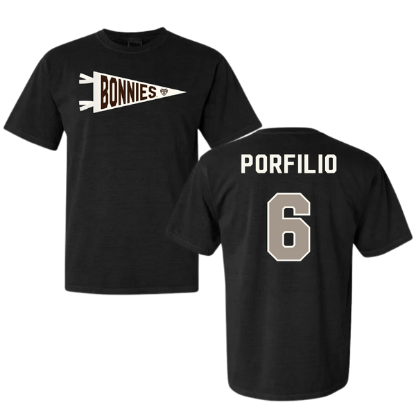 St. Bonaventure University Lacrosse Black Pennant Comfort Colors Tee - #6 Nick Porfilio