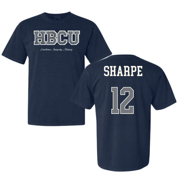 Jackson State University Football Navy HBCU Varsity Comfort Colors Tee - #12 Nireek Sharpe