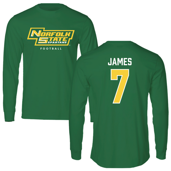 Norfolk State University Football Kelly Green Long Sleeve - #7 Nolan James