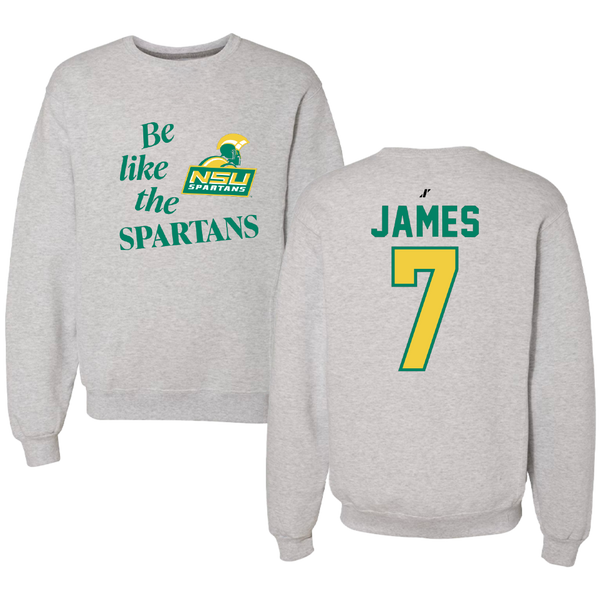 Norfolk State University Football Light Gray Be Like Us Crewneck - #7 Nolan James