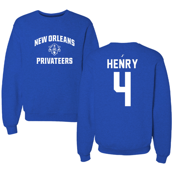 University of New Orleans Basketball Blue General Crewneck - #4 Omarion Henry