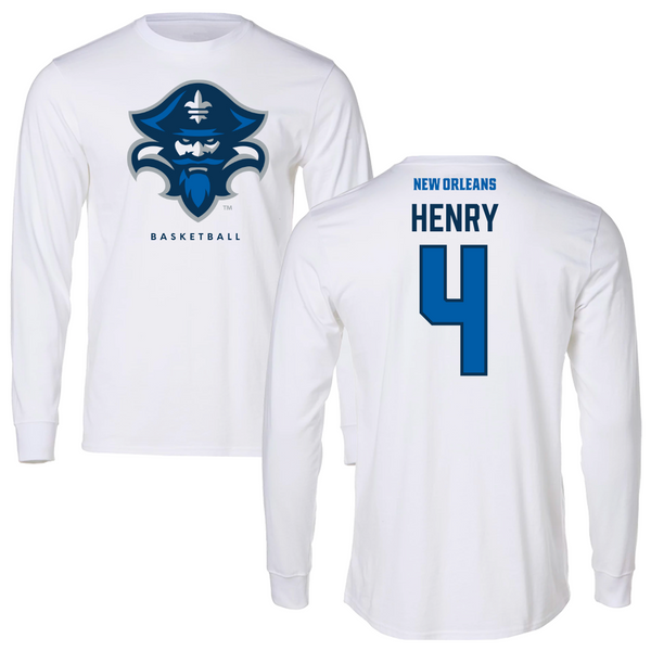 University of New Orleans Basketball White Long Sleeve - #4 Omarion Henry