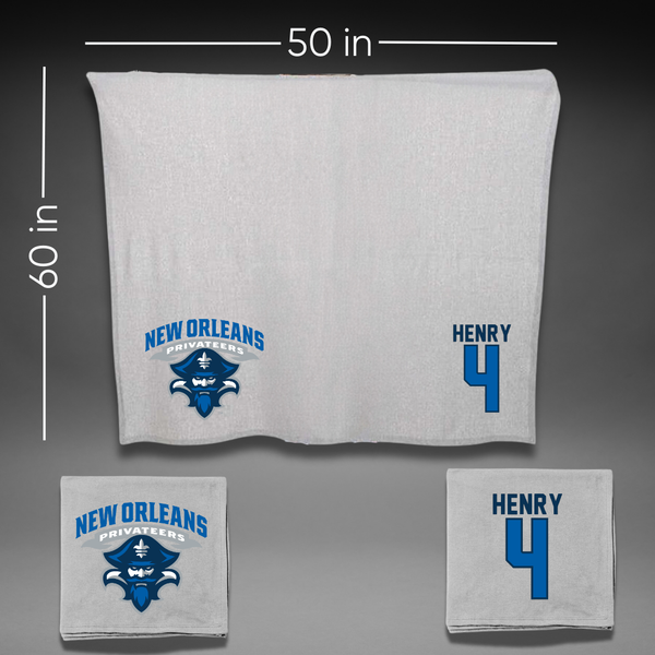 University of New Orleans Basketball Gray Blanket - #4 Omarion Henry