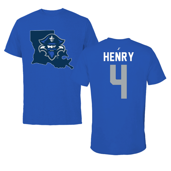 University of New Orleans Basketball Blue State Tee - #4 Omarion Henry