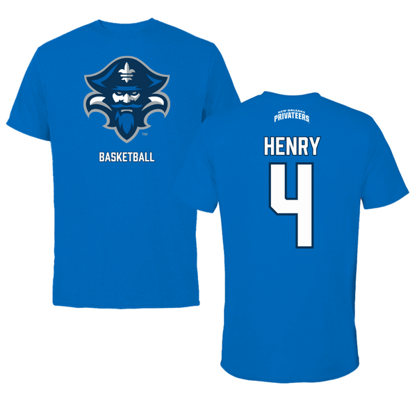 University of New Orleans Basketball Blue Mascot Tee - #4 Omarion Henry