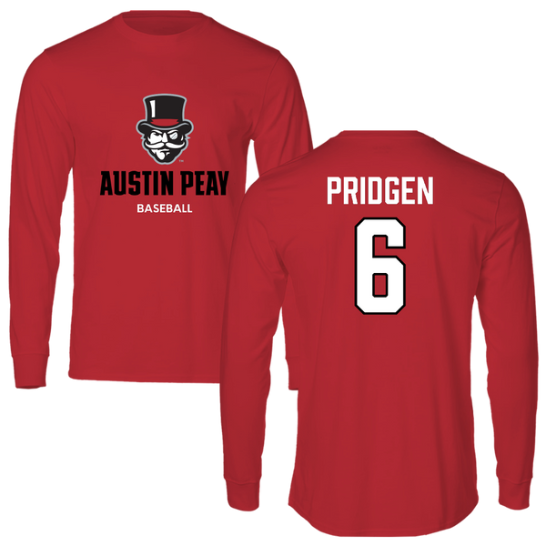 Austin Peay State University Baseball Red Mascot Long Sleeve - #6 Paris Pridgen