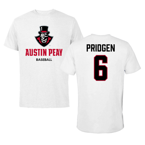Austin Peay State University Baseball White Tee - #6 Paris Pridgen
