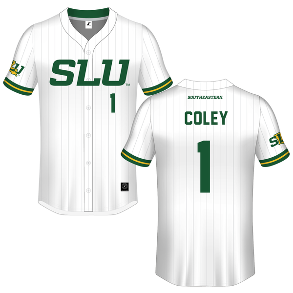 Southeastern Louisiana University White Pinstripe Button-Down Jersey - #1 Parker Coley