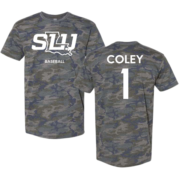 Southeastern Louisiana University Baseball Vintage Camo Tee - #1 Parker Coley