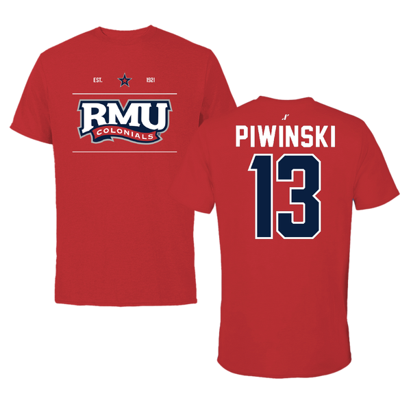 Robert Morris University Lacrosse (M) Red Colonials Tee - #13 Parker Piwinski