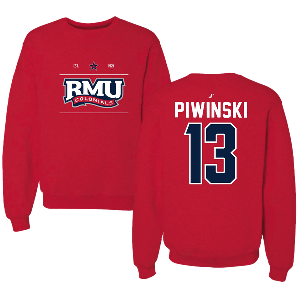 Robert Morris University Lacrosse Red General Crewneck - #13 Parker Piwinski