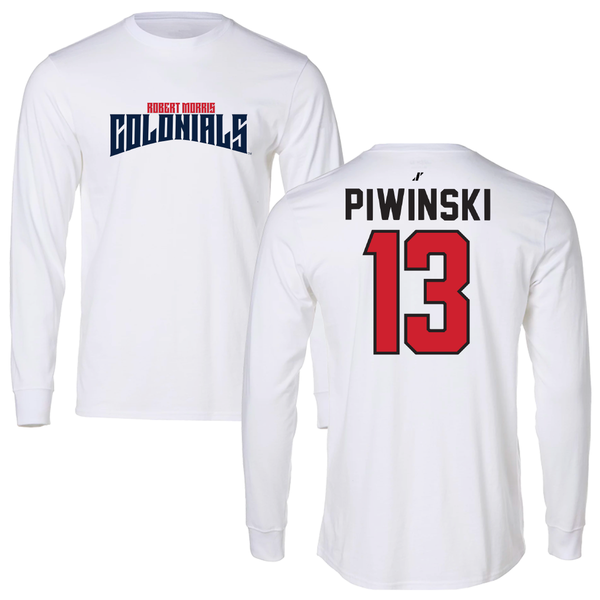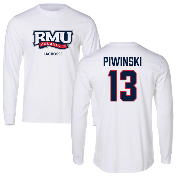 Robert Morris University Lacrosse (M) White Long Sleeve - #13 Parker Piwinski