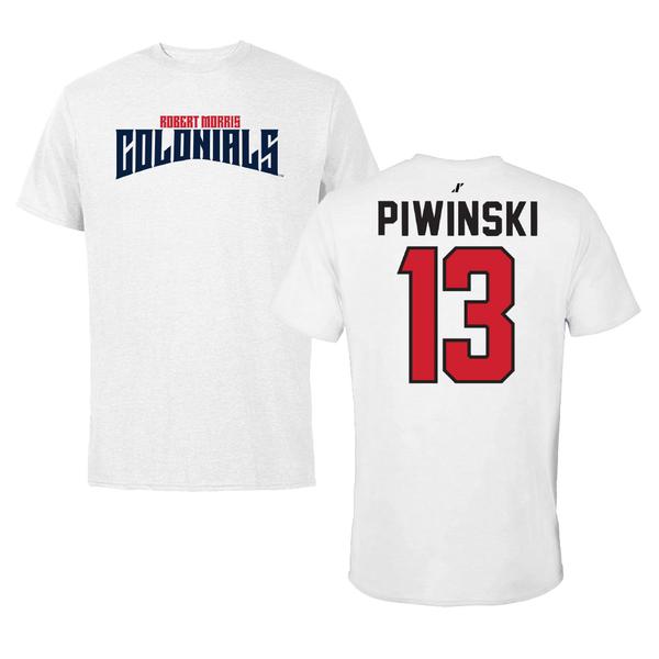 Robert Morris University Lacrosse (M) White Tee - #13 Parker Piwinski