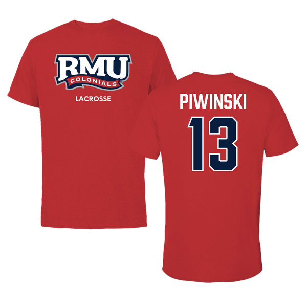 Robert Morris University Lacrosse Red Tee - #13 Parker Piwinski