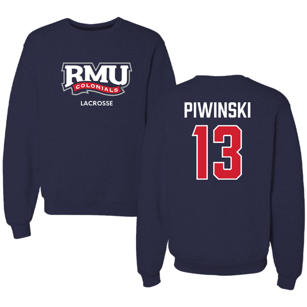 Robert Morris University Lacrosse (M) Navy RMU Crewneck - #13 Parker Piwinski