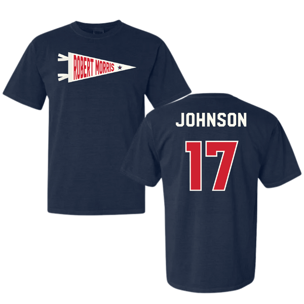 Robert Morris University Ice Hockey Navy Pennant Comfort Colors Tee - #17 Patrick Johnson