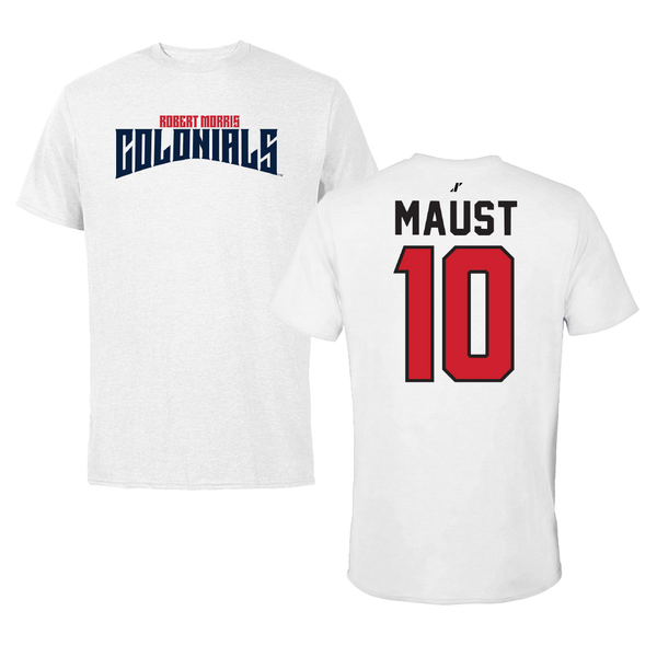 Robert Morris University Ice Hockey White Classic Performance Tee - #10 Paul Maust