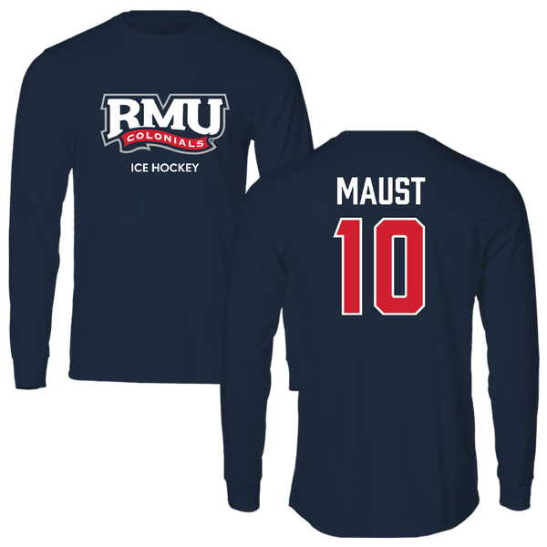 Robert Morris University Ice Hockey (M) Navy RMU Long Sleeve - #10 Paul Maust