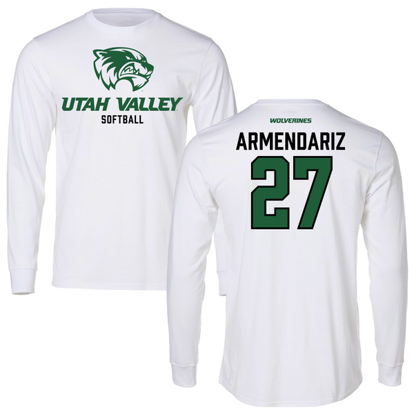 Utah Valley University Softball White Classic Long Sleeve - #27 Payge Armendariz