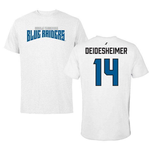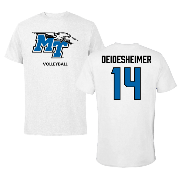 Middle Tennessee State University Volleyball White Classic Performance Tee - #14 Payton Deidesheimer