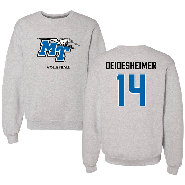 Middle Tennessee State University Volleyball (W) Light Gray Crewneck - #14 Payton Deidesheimer