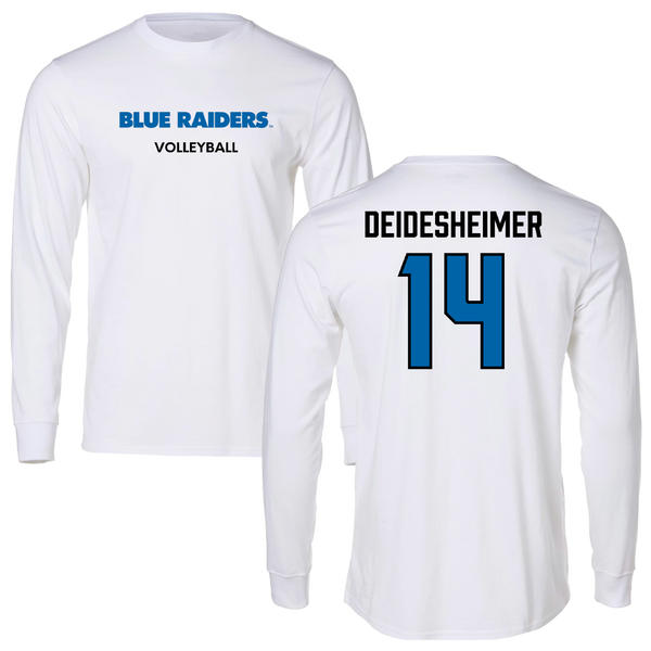 Middle Tennessee State University Volleyball White Classic Long Sleeve - #14 Payton Deidesheimer