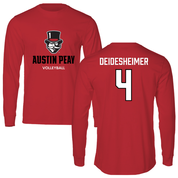 Austin Peay State University Volleyball (W) Red Mascot Long Sleeve - #4 Payton Deidesheimer