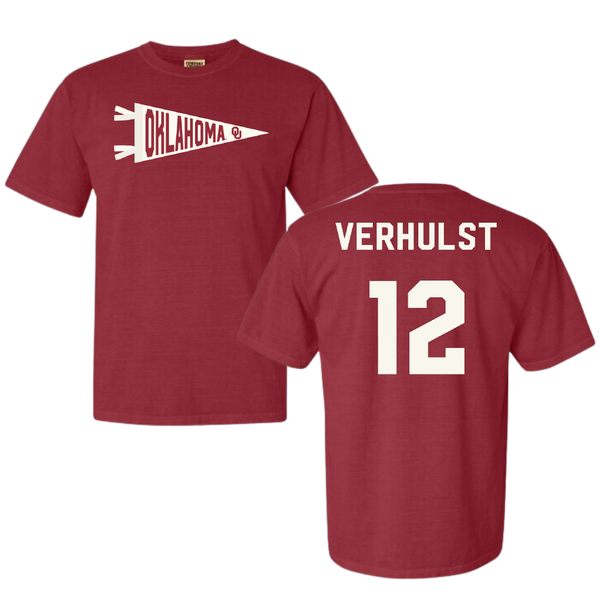 University of Oklahoma Basketball Crimson Pennant Comfort Colors Tee - #12 Payton Verhulst