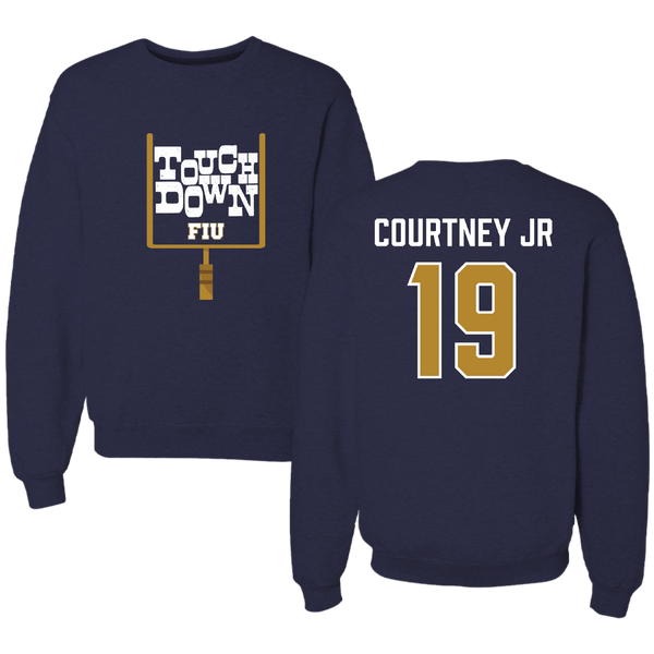 Florida International University Football Navy Touchdown Crewneck - #19 Percy Courtney Jr