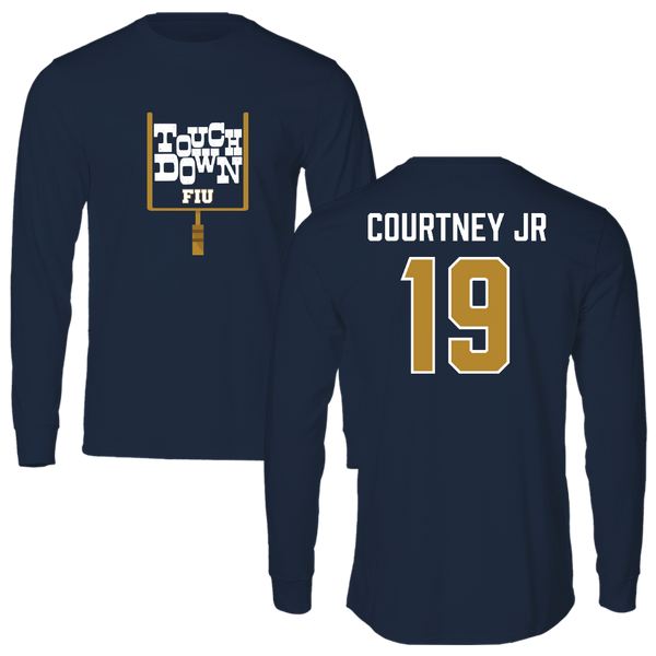 Florida International University Football Navy Touchdown Long Sleeve - #19 Percy Courtney Jr