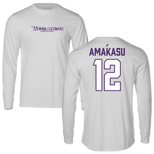 Westminster University (Utah) Basketball White Performance Long Sleeve - #12 Peter Amakasu