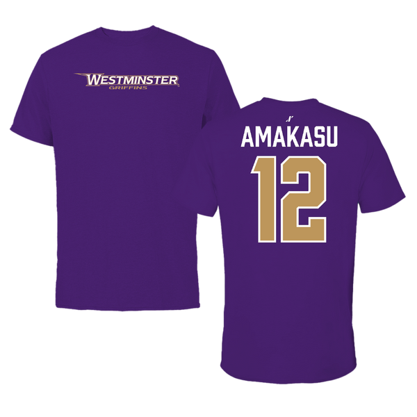 Westminster University (Utah) Basketball Purple Performance Tee - #12 Peter Amakasu