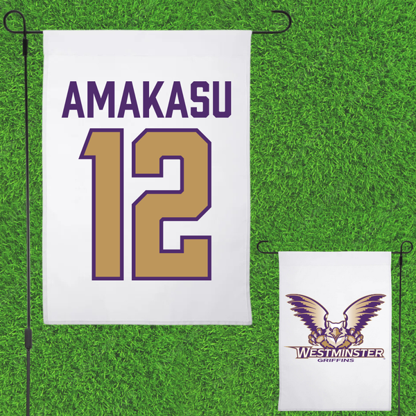 Westminster University (Utah) Basketball White Garden Flag - #12 Peter Amakasu