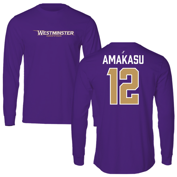Westminster University (Utah) Basketball Purple Performance Long Sleeve - #12 Peter Amakasu