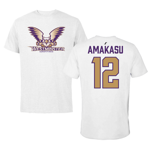 Westminster University (Utah) Basketball White Performance Tee - #12 Peter Amakasu