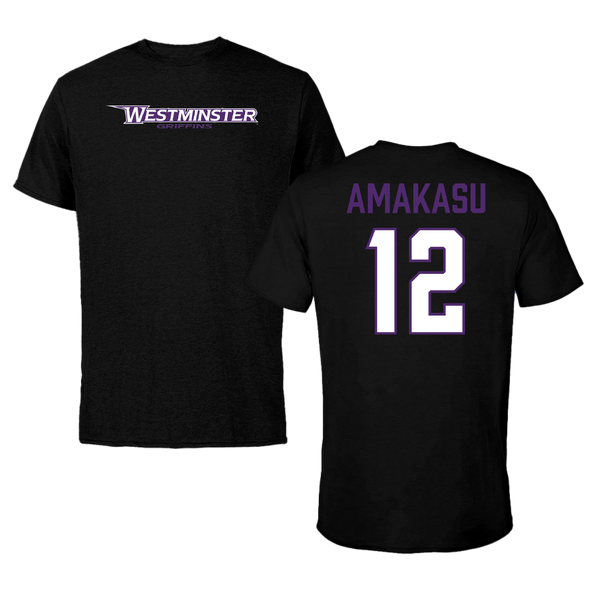 Westminster University (Utah) Basketball (M) Black Griffins Tee - #12 Peter Amakasu