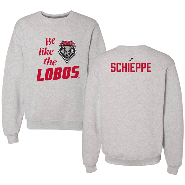 University of New Mexico TF and XC Light Gray Be Like Us Crewneck - Peyton Schieppe