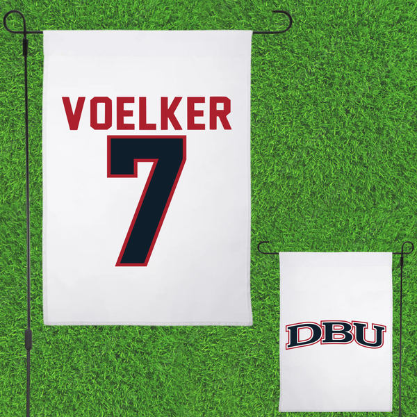 Dallas Baptist University Soccer White Garden Flag - #7 Peyton Voelker