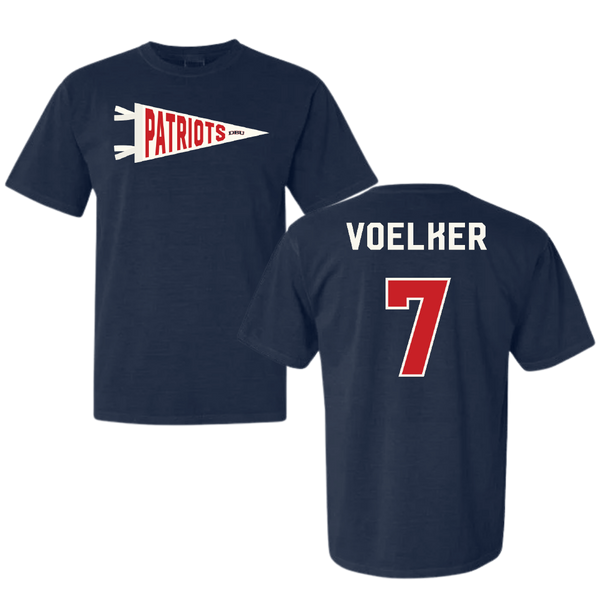 Dallas Baptist University Soccer Navy Pennant Comfort Colors Tee - #7 Peyton Voelker