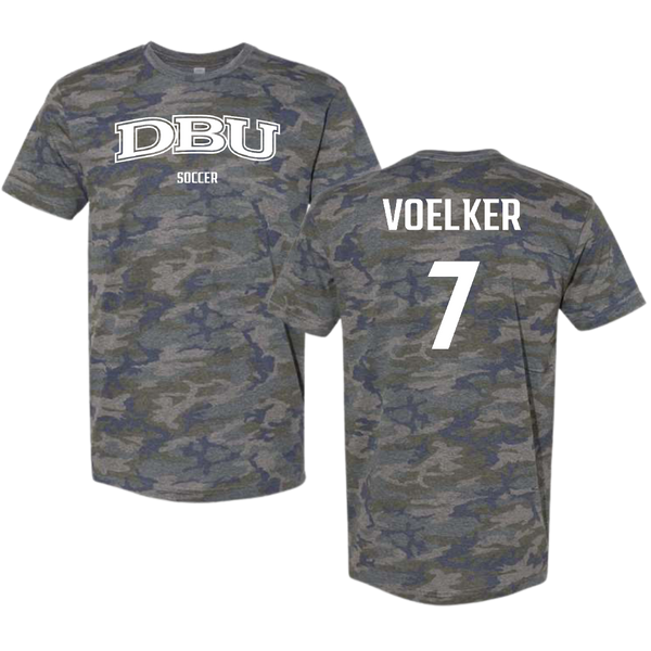 Dallas Baptist University Soccer (M) Vintage Camo Tee - #7 Peyton Voelker