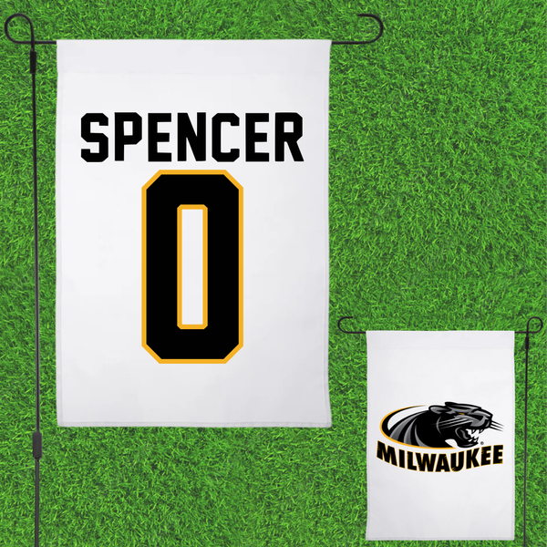 University of Wisconsin-Milwaukee Basketball White Garden Flag - #0 Pierce Spencer