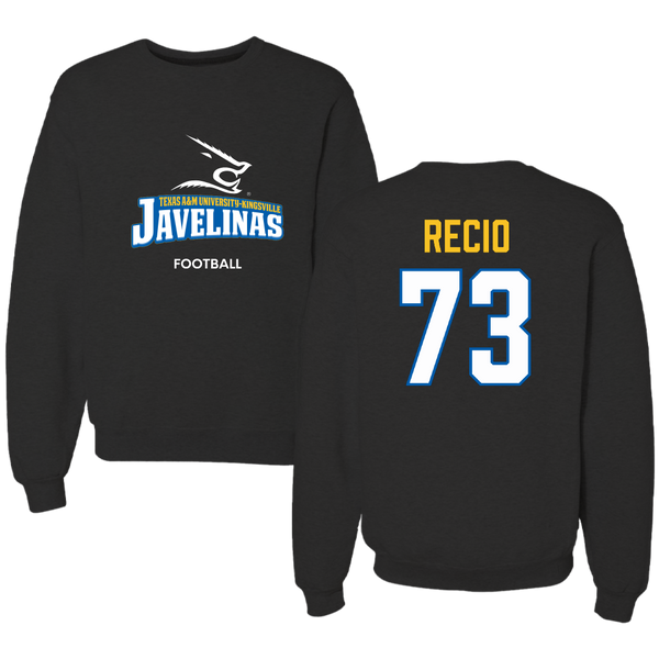 Texas A&M University-Kingsville Football Black Crewneck - #73 Rafael Recio