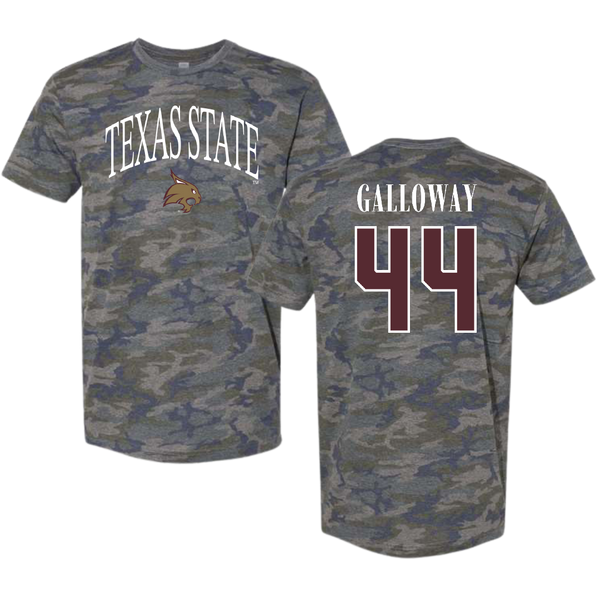 Texas State University Baseball Vintage Camo Tee - #44 Rashawn Galloway