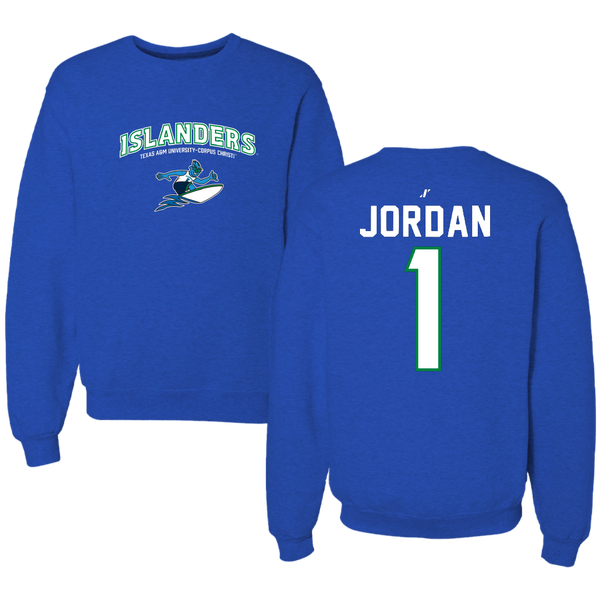 Texas A&M University-Corpus Christi Beach Volleyball Blue General Crewneck - #1 Raven Jordan