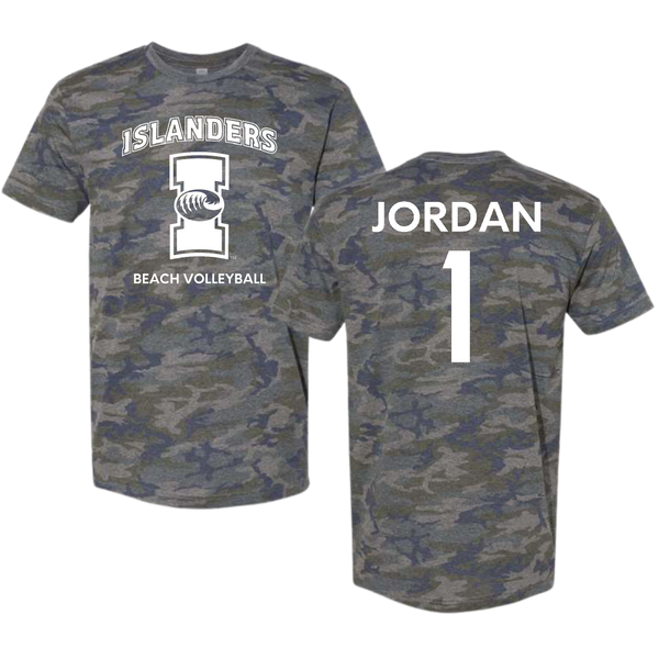 Texas A&M University-Corpus Christi Beach Volleyball Vintage Camo Tee - #1 Raven Jordan